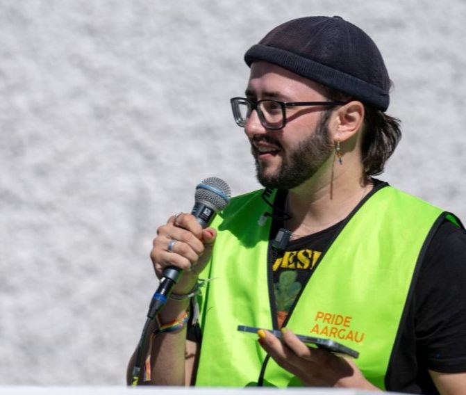 Sein Optimismus, seine tausend Ideen und sein Kampfgeist für eine bessere Welt motivierten alle und machten Dinge möglich, die vorher undenkbar schienen: Während der Pride 2024 hingen in der ganzen Stadt verteilt Regenbogenfahnen, inklusive am Rathaus und an der Kirche. Ein Jahr später kamen Schaufenster mit Pride Dekorationen dazu. Für mehr Sichtbarkeit der Queerness im Aargau hatte Noa unzählige Ideen: Drag-Lesungen, einen queeren Flohmarkt, ein queeres Outdoor-Training, einen Filmabend, Standaktionen, bei denen man sich die Nägel lackieren kann, und vieles mehr. Das alles hatte nicht Platz in einem Tag. So wurde der Monat vor der Pride kurzerhand zum Pride Month erklärt, in dem genau solche Events stattfinden konnten.