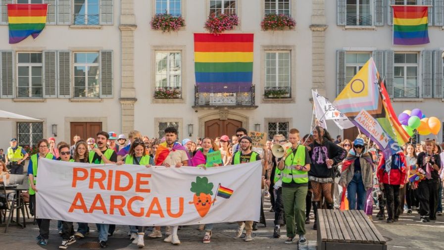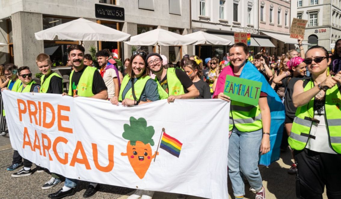 Sein Optimismus, seine tausend Ideen und sein Kampfgeist für eine bessere Welt motivierten alle und machten Dinge möglich, die vorher undenkbar schienen: Während der Pride 2024 hingen in der ganzen Stadt verteilt Regenbogenfahnen, inklusive am Rathaus und an der Kirche. Ein Jahr später kamen Schaufenster mit Pride Dekorationen dazu. Für mehr Sichtbarkeit der Queerness im Aargau hatte Noa unzählige Ideen: Drag-Lesungen, einen queeren Flohmarkt, ein queeres Outdoor-Training, einen Filmabend, Standaktionen, bei denen man sich die Nägel lackieren kann, und vieles mehr. Das alles hatte nicht Platz in einem Tag. So wurde der Monat vor der Pride kurzerhand zum Pride Month erklärt, in dem genau solche Events stattfinden konnten.